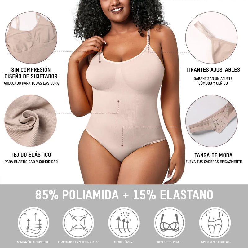 Nuestro body ofrece compresión focalizada que alisa los bultos no deseados mientras brinda un soporte excepcional para tu busto. El diseño sin costuras garantiza una silueta favorecedora, dándote la confianza de lucir tus curvas.